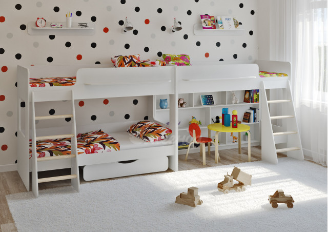 Две удобные белые полки Л-01 над каждой кроватью обеспечат Вашим детям удобное хранение мелочей.